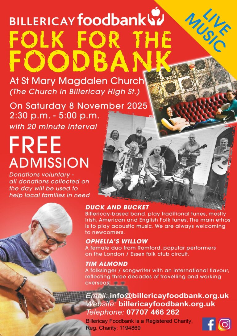 Please join us in a night of live music, raising funds for Billericay Food Bank at St Marys Church, Billericay.